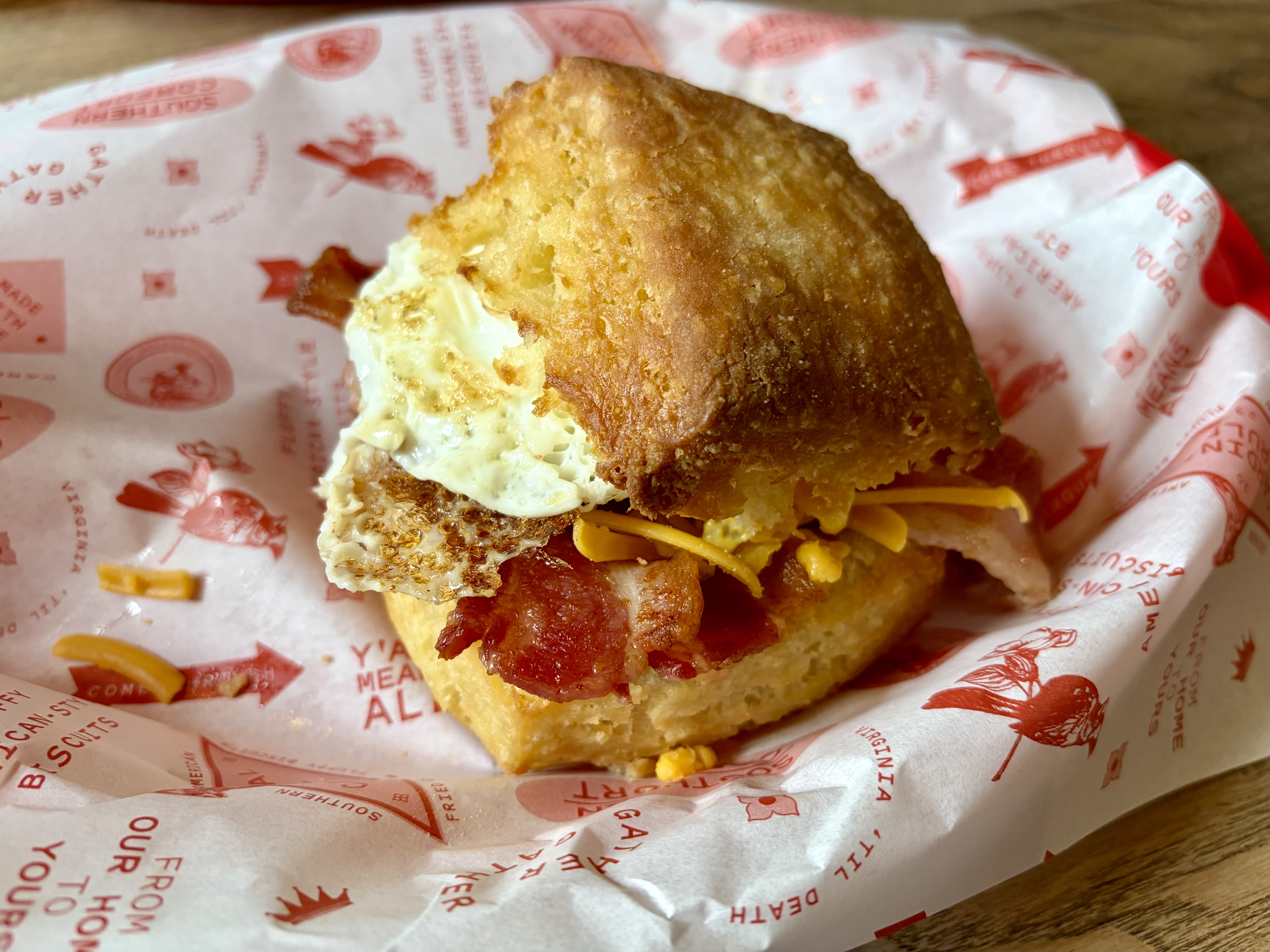 Their kitchen regularly hosts takeovers from local food vendors, and during our visit, Cardinal Rule was serving a menu of biscuit sandwiches. While we weren’t hungry this time, we did go back the next morning for brunch. The bacon, egg and cheese biscuit was delicious and the Bloody Mary with a bacon garnish was outstanding. Nik had biscuits and gravy.