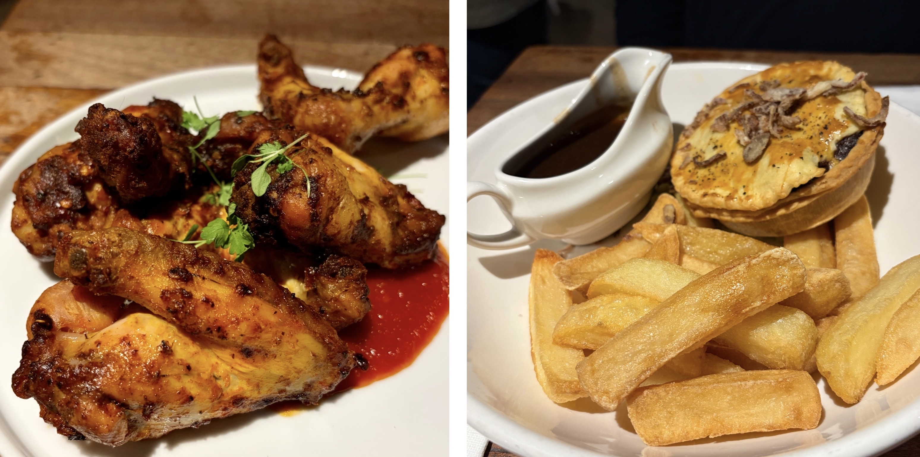 Nik and I shared two dishes, peri-peri chicken wings and the steak and ale pie. Both were very good.