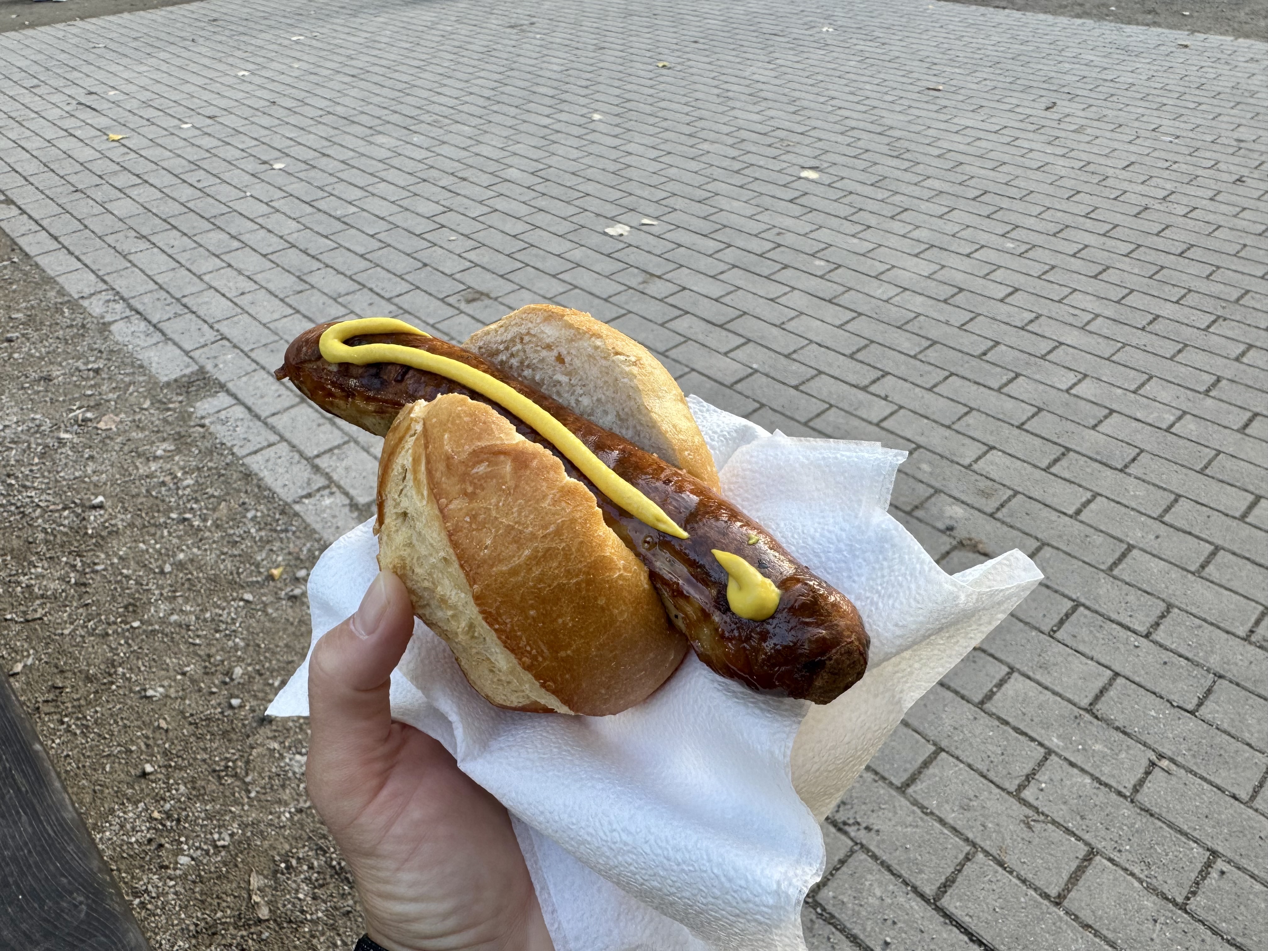 Outside of the tent were hightop tables, another big food stand, a few smaller food venders with pretzels, sweets and other things of that sort. We got sausages and half a roasted chicken. Both hit the spot. Of note, credit cards were accepted throughout and you bought tokens to use for payment of food and drink.
