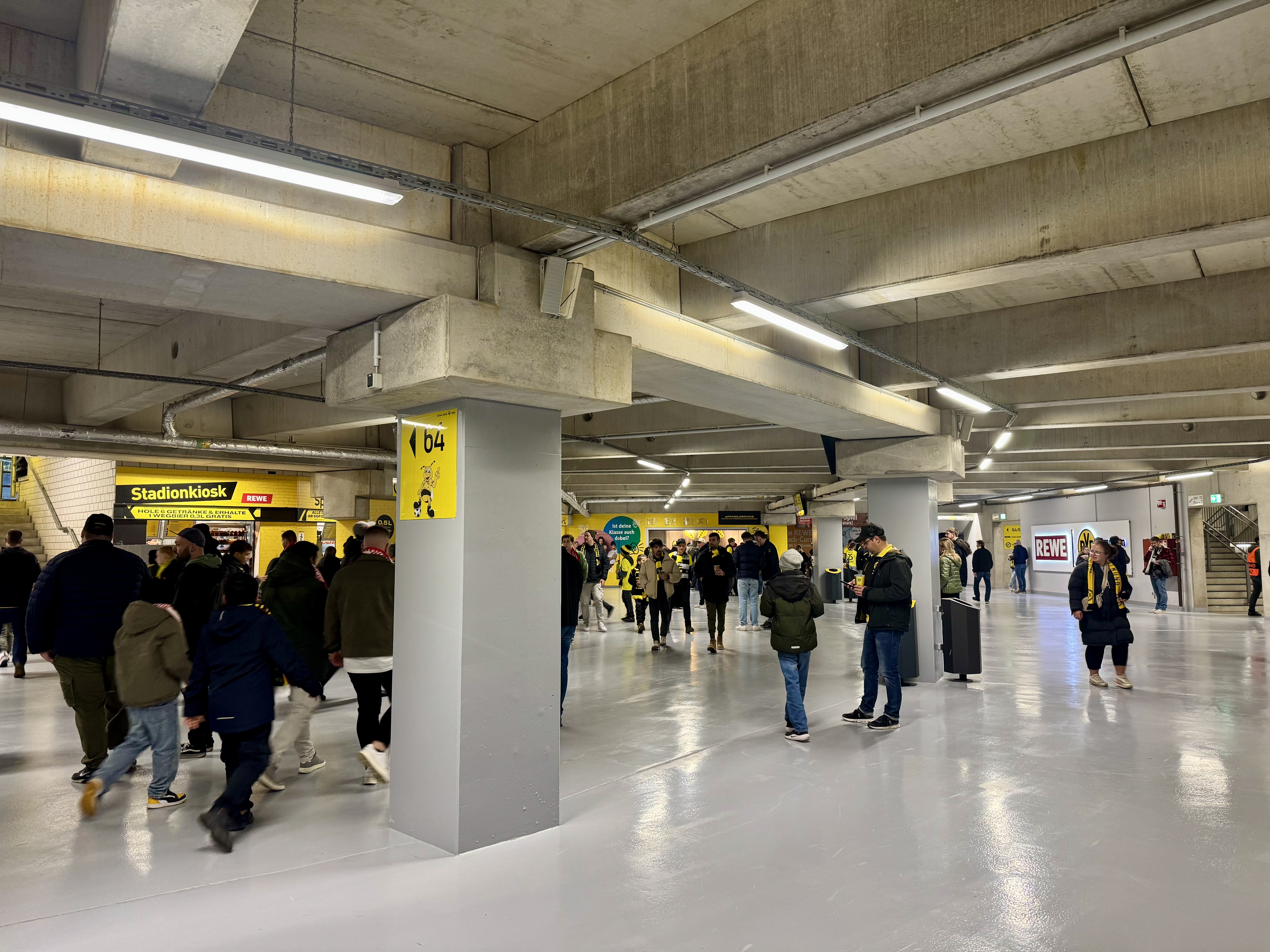 Over the last few years we’ve been to several European stadiums for sporting events and concerts. Dortmund’s stadium felt the newest and most American, with wide, bright concourses and plenty of restrooms for both men and women. The stadium also had a very nice and large team shop with every possible item one might need to own so I picked up a team scarf.